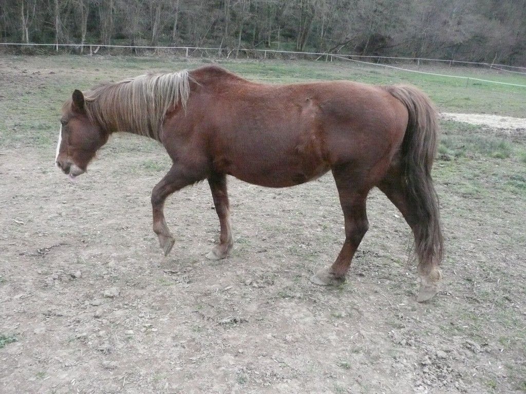 | Dire merci | ben on lui voit un peu trop les cotes à mon gout, les pieds n'ont pas été parés, le poil est terne et manque de muscles. comparé à l'autre photo, ou elle est top , ça fait un choc. on n'a pas l'impression qu'on fait bien attention à elle. c'est quel système de pension ? box/paddock ou uniquement dehors ? |