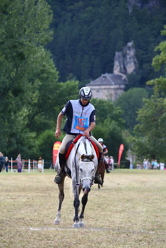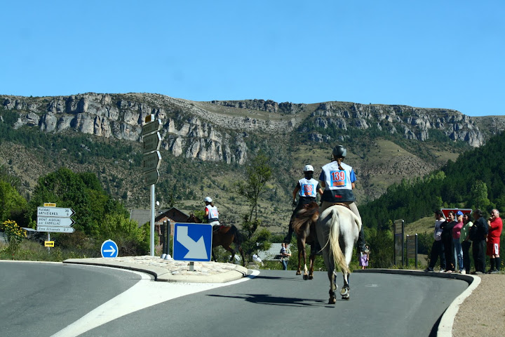 | Dire merci | avec des étriers K(vall arrivée au vet gate de Camprieu sur la route a Meyrueis montée sur le causse |