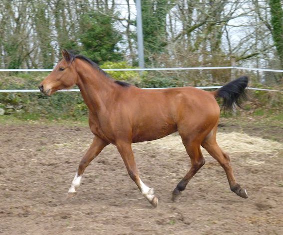 | Dire merci | Merci, merci !!! son père est Aziz de Gargassan. il est joli mais qu'est-ce qu'il est chiant... je viens de me faire 2 h de treuilling !! impossible de lui faire accepter qu'un trotting, galoping ne se fait pas pied au plancher surtout quand Monsieur voit des loups bleus tous les 10 mètres... pas cool ! je vais le remettre au pas à se manger du dénivelé !!! |