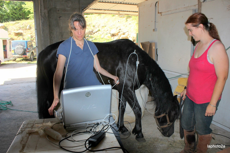 | Dire merci | Ce jeudi 6 juin, Frombu a participé a l'etude Genendurance, qui a pour but de determiner les combinaisons genetiques et caracterisque phénotypes qui aiderai ou pas au performance dans le cadre de l'endurance Lien on commence par une batterie d'examen, echographie cardiaque ![]() ![]() prise de sang disverse, prise d'image avec gommettes marquant des points physiques ![]() mais aussi mesures diverse, hauteur au garrot, longueurs du corps, diametre du thorax une fois cela fait, on habille le cheval, qui en plus du matos habituel est blindé d'electrode pour mesurer le moindre parametres du cheval mais aussi d'une montre polar pour le cadio ![]() avant de monter dessus, test d'allure (pas et trot) en main. on monte pour partir sur la piste de galop.. en attendant ma coequipiere je fais mumuse sur des buttes de terre ![]() on est parties pour 45mn de galop en essayant de se caler a une vitesse de 20km/h, exercice difficile pour Frombu car il a du mal a s'y caler sans retomber dans le trot ![]() ![]() aucun pied au sol ![]() ![]() ![]() ![]() donc pour m'aider je me calais sur la jument qui courrait avec moi, ca m'a aider a trouver un rythme mais pour la concentration de Frombu beaucoup moins ![]() sinon ca a ete tres eprouvant, non pas le temps de galop mais plutot les conditions, car tourner en rond sur une aussi courte piste oblige a multiplier les tours a l'ecoeurment.. on a bien du faire 23-24 tours... meme les chevaux n'y voyaient pas l'interet et regulierement cherchaient a paddocker a l'entree... une fois fini, prise de sang immediate apres effort, et retest d'alluer en main. retour aussi a l'echographie et encore une prise de sang 30min apres la fin de l'effort. et un petit questionnaire sur le mode de vie du cheval l'equipe de veterinaire etait contente de voir une race totalement independante de l'arabe, ou issu de croisement avec l'arabe ![]() meme si niveau gentique cela sera difficile de faire de vrai rapprochement ![]() et d'ici quelque temps j'aurai le bilan sanitaire le plus complet de mon cheval a l'effort, de ce qu'il m'ont dit c'est mon cheval qui avait le meilleur etat pour l'endurance (les autres etait "trop" gras), a une excellente recuperation et travaille bien en aerobie |