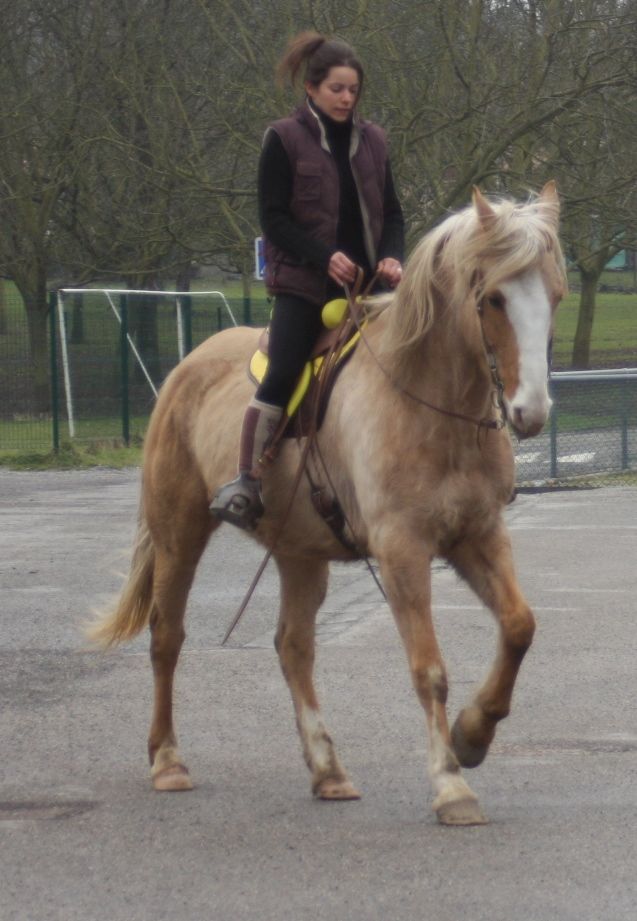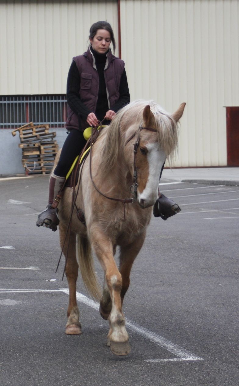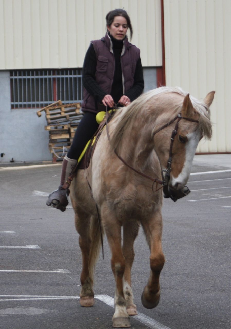 | Dire merci | Bon ça y est j'ai fait l'essai de la selle. Avant quelques photos que j'hésite bien à mettre, quelques remarques. Bon d'abord je voulais mettre des étriers "normaux" et il passent pas sur les fenders donc les Gm... c'est encore pire avec des fenders que des quartiers une pure horreur pour la position... du coup l'essai est un peu destabilisant pour moi (en dehors de la selle qui glisse un peu dût à la fraicheur )Bon ensuite je constate que je tiens les rênes en général trop courtes, me semble t-il (sur les photos j'avais rallongé) j'essaye la demi tension mais mon cheval à l'air de me demander plus de mou il faut donc que j'arrange ça. Compte tenu du lieu de l'essai Ming Mei est toujours "excité" mais je vois bien que je fais beaucoup de choses mal (il lève la tête régulièrement, certainement un non respect de la main fixe). Trop de nouveauté pour moi aujourd'hui, du mal à me poser tranquillement. Du coup je suis trèèèèès déçue de moi... (mais déjà à cheval je précise) ![]() Soyez donc indulgente je vois bien ce qu'il ya à faire (et en plsu je ne prends pas les photos les plus mauvaises je susi pas folle) ![]() ![]() ![]() ![]() Sur celle ci il entame le reculer (à priori je ne sais plus s'il la fait ou pas )![]() |