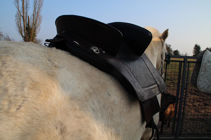| Dire merci | La selle me paraît trop étroite au niveau de l'ouverture d'arcade! et le poids du cavalier est visiblement trop en arrière vu les traces de transpi. |