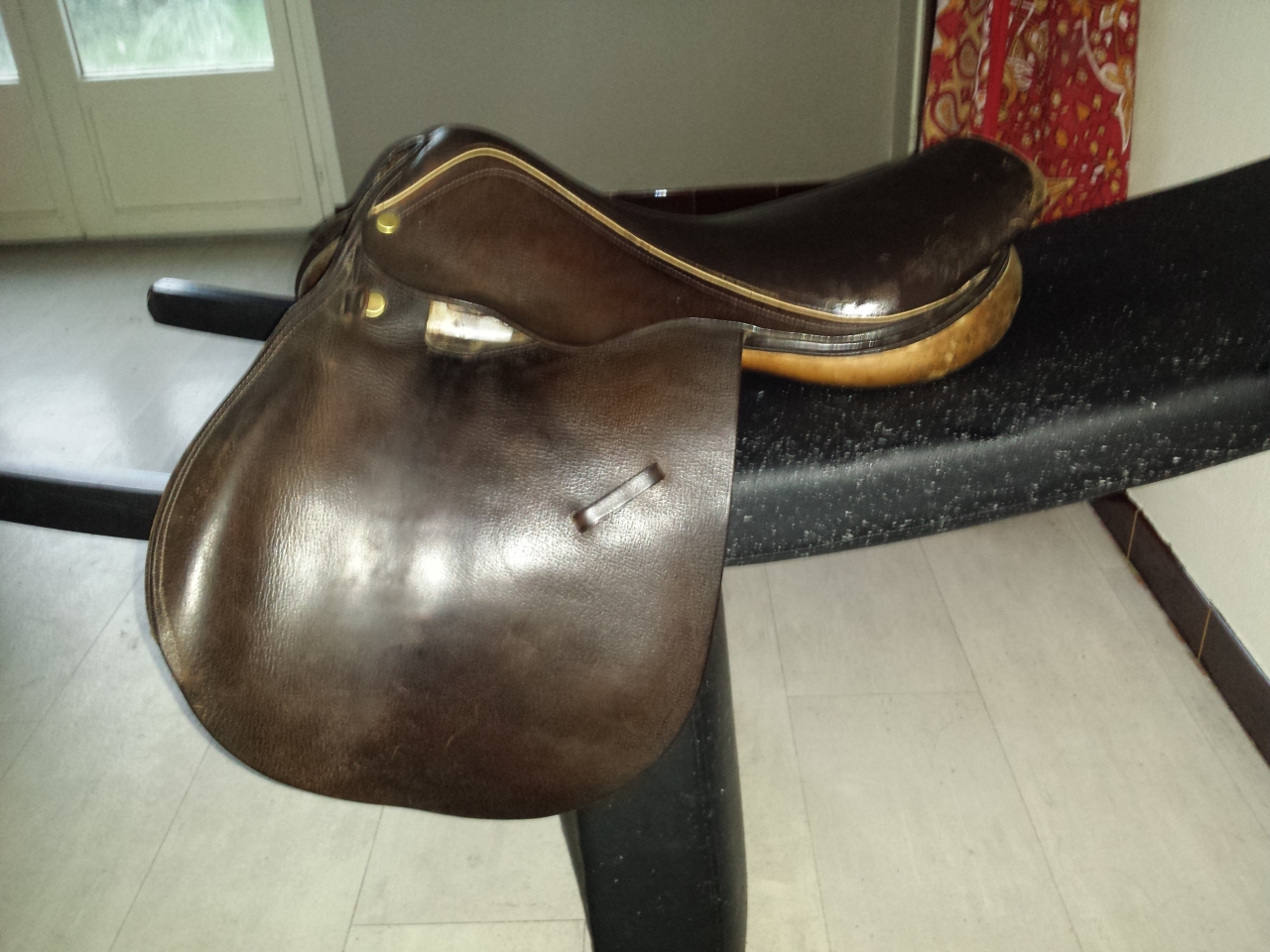 | Dire merci | Bonjour, J'ai récupéré une vieille selle mais impossible de trouver une éventuelle marque... Le cuir est de bonne qualité vu son âge... C'est juste pour le faire une idée de prix pour la vendre... Je ne m'attends pas a des masses mais je n'ai aucune idée de prix... Merci ! ![]() |