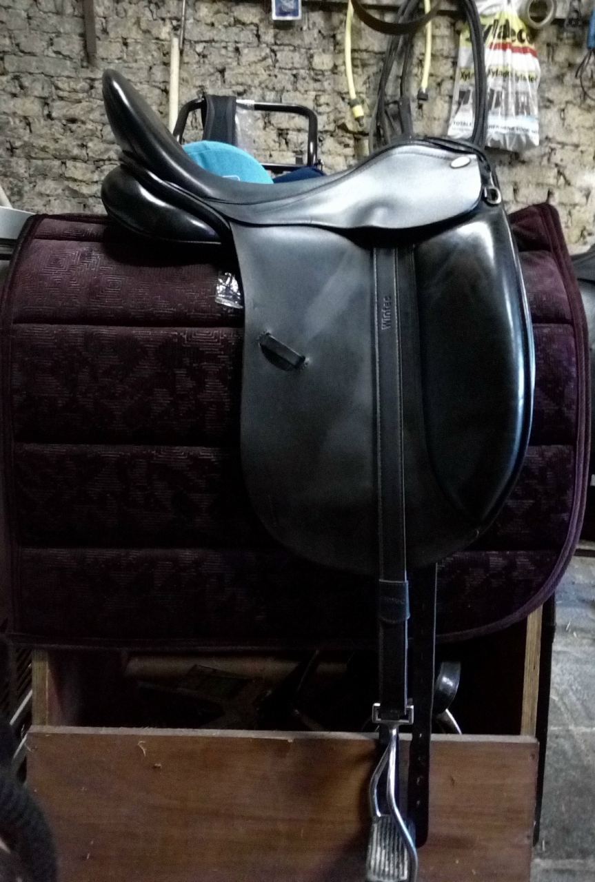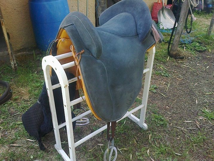 | Dire merci | Équidé: cheval de club 1m60 et mon sbs 1m80 Marque: Jorge Canaves mixte tendance dressage, doit avoir plus de 10 ans, 18 pouces, longueur des panneaux 50 cm Arcade: médium/31cm, non modifiable, nez coupé pour les fort garrots, panneaux laines, taquets avant assez prononcé Utilisation: pour tout, mais surtout pour dressage et balade, siège trop creux pour sauter Confort: parfait pour les chevaux avec garrot bien sorti et épaules large. Très confortable et encadrant pour le cavalier, on ne décolle pas du siège Prix: neuve environ 700€, achetée d'occasion équipée pour 180€ ![]() |