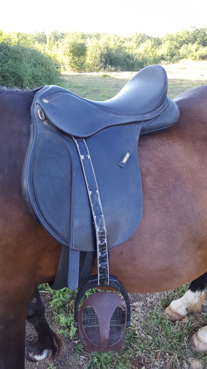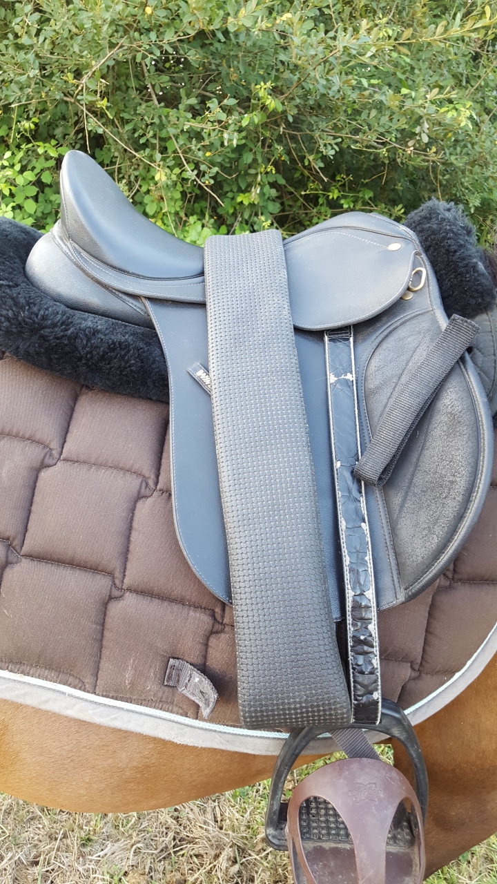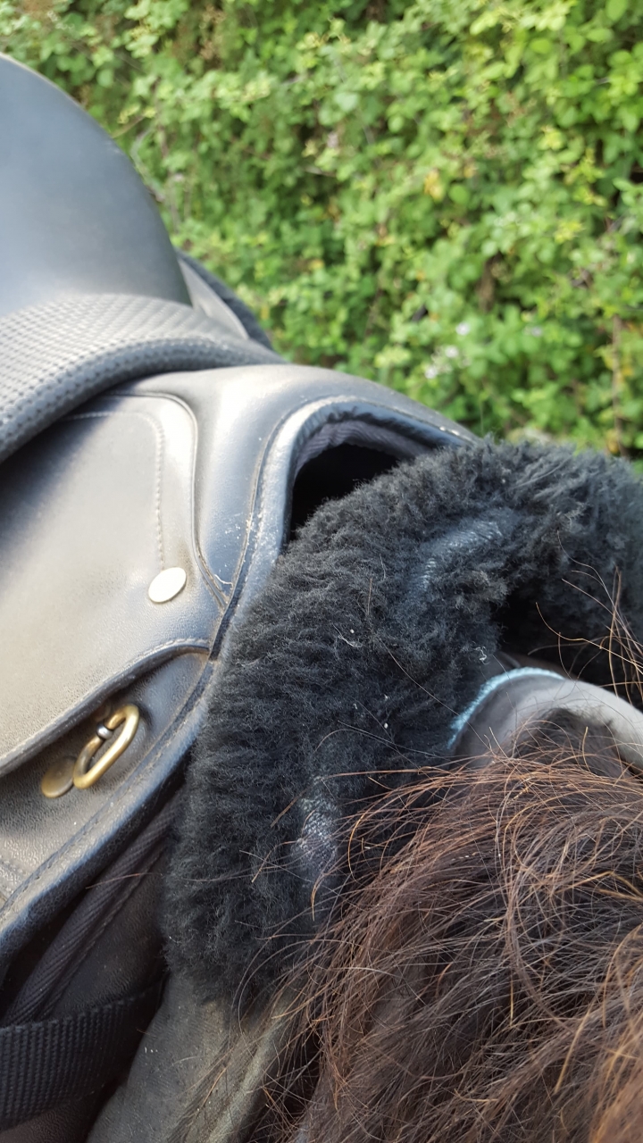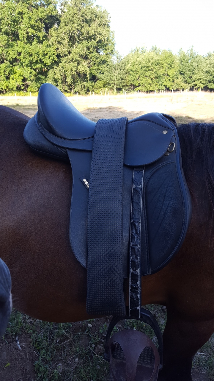 | Dire merci | Bonjour, J'explique vite fait ma situation. J'ai une jument Welsh Cob/Sport d'1m35 qui est normalement assez fine et très muscler (il y a 1 ans/1 ans et demi, après elle a pouliné et s'est blessé, bref...). J'ai déménagé en février et je n'avais pas encore le terrain avant, mon oncle ayant aussi des poneys a donc accepté de garder mes 4 poneys, sauf que depuis février elle n'a quasiment pas travailler. Donc elle a normalement un dos beaucoup plus muscler, pareille pour le garrot et le reste. Passons à la réel question. J'ai reçu il y a peu une selle Wintec 500 Cair mixte (ancien modèle) avec dessus l'arcade blanche (XL). J'ai été voir ma jument hier, j'ai donc essayé la selle et voici ce que ça donne sans rien (juste la selle). ![]() ![]() ![]() ![]() ![]() ![]() Je passe 3 doigts vraiment juste, je suis obligé de repousser la selle car le pommeau retombe. Voici maintenant avec un tapis et un amortisseur : ![]() ![]() ![]() ![]() ![]() ![]() ![]() |