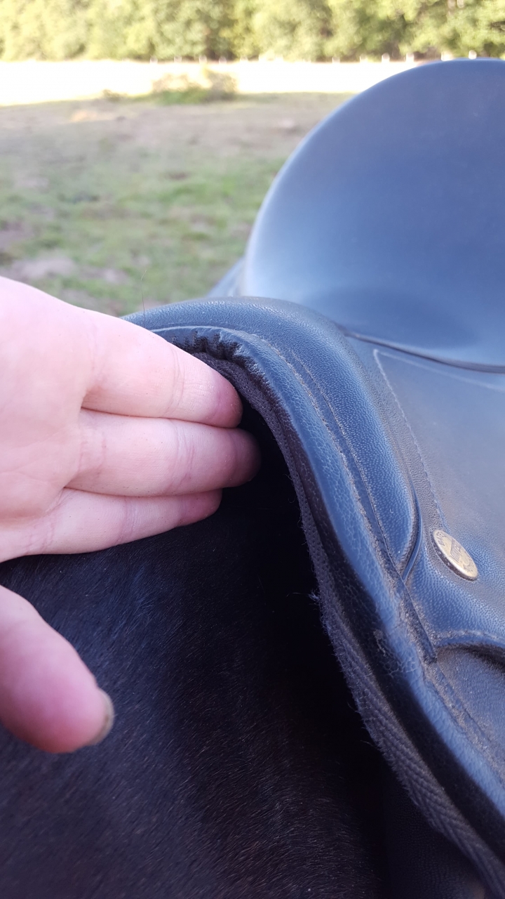 . Lorsque je mets la selle sans rien et pas sangler sur ma jument puis que je l'as fait marcher, la selle fait un mouvement de bascule tout en suivant ma jument (haut, bas, haut, bas...).