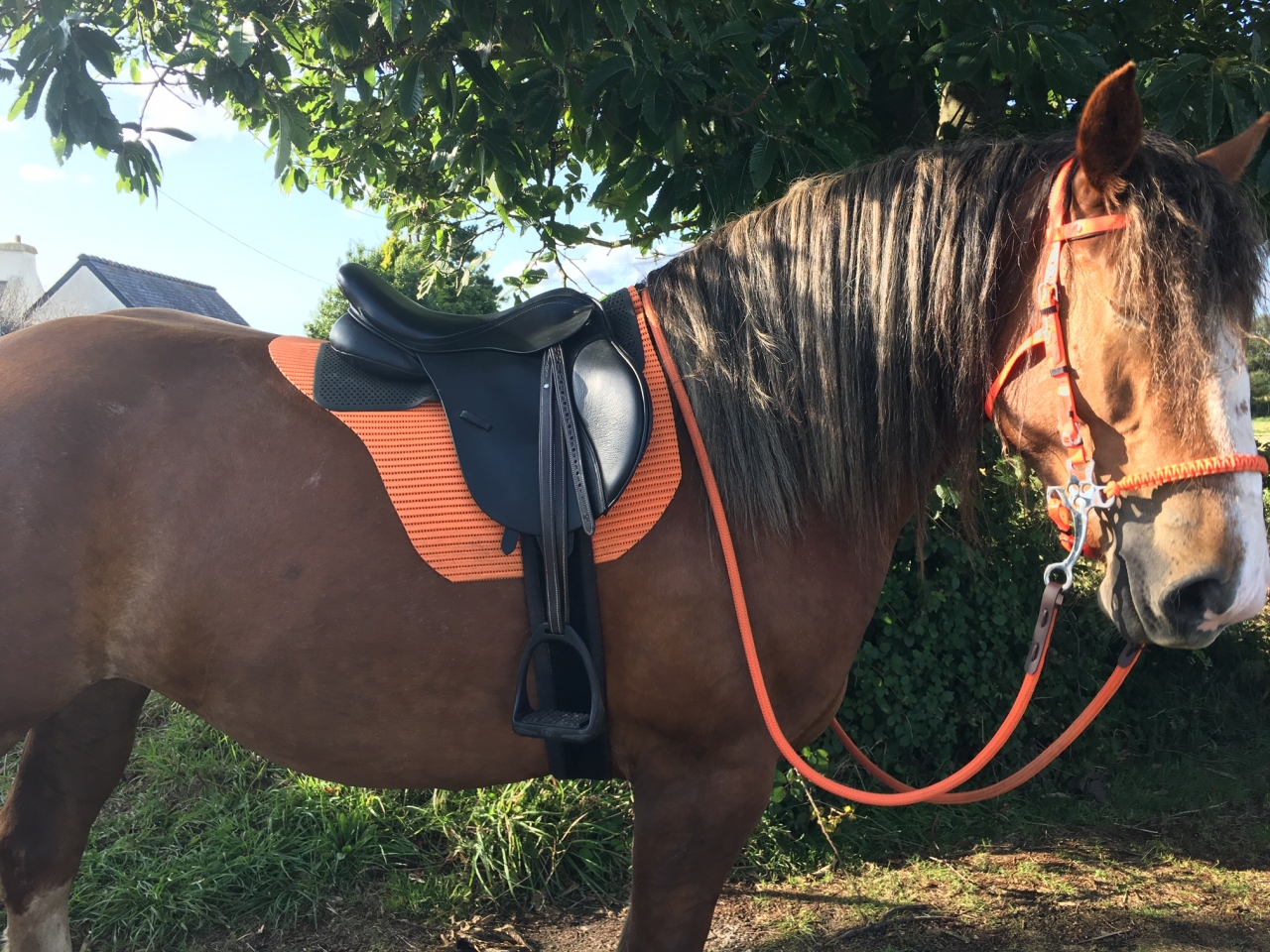 | Dire merci | Hello, même si ce sujet n'est pas nouveau, j'ai souvent eu du mal à trouver des informations lorsque j'ai cherché à équiper ma jument... Alors pour vos gros, quel matériel avez-vous choisi ? - Comme selle ? - Comme tapis ? - Comme sangle ? - Et surtout, en êtes-vous satisfait(e)s ? Pour ma part, ma jeune jument bretonne de 3.5 ans à peine débourrée à une selle Kent&Master cob arcade jaune, un tapis fabriqué maison à partir d'un mètre de mousse en sympanova (pas esthétique mais efficace contre les selles qui tournent...) et d'un gel pad acavallo ligthweigth : ![]() Je suis aussi particulièrement intéressée par les retours de personnes ayant une selle Guichard sur leur trait. |