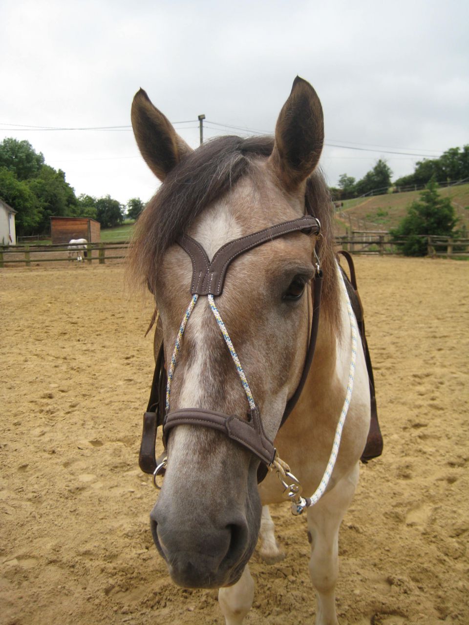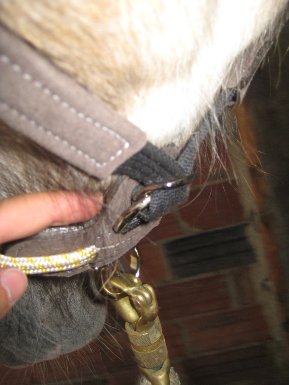 | Dire merci | Petit souci avec les photos, je reessaie![]() la muserolle ![]() le frontal, par contre je trouve qu'il est très près derrière les oreilles aussi?? ![]() Et mon petit souci... ![]() |