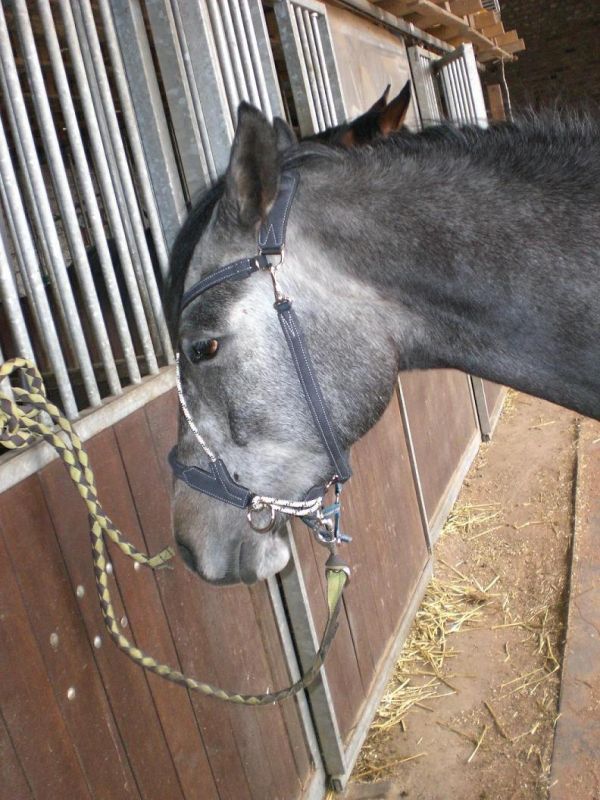 | Dire merci | COUCOU les gens, alors j'ai recu mon likorne ce midi!!! du coup cette aprem j'ai été vite fait a la ferme pour l'essayer a mon cheval, et la... surprise.... c'est nikel! la taille est super bien, j'ai juste eu a reserrer la sous gorge et c tout!! les renes nikel, la bonne longueur!!! c'est magnifique!!! j'a fait quelques essais pour voir si mon cheval réagissait aussi bien a l'arret d'urgence qu'en licol ( j'étais a pieds!) et c'est bon, j'ai plus k essayer monté demain!! comme je suis gentille, j'ai pensé a vous pour les photos!!! j'ai tellement embété le monde que je pouvais pas faire autrement! lol aller place aux photos ( désolé pour la qualité mais monsieur n'a pas dégné rester tranquil!) de face: ![]() de profil: ![]() petite vue du dessous: ![]() et avec l'effet loréal: ![]() et oui lui aussi le vaut bien! j'ai un copine qui la vu elle a dit que c t original, du coup elle la essayé sur son entier arabe, ca lui allai vachement bien!! |