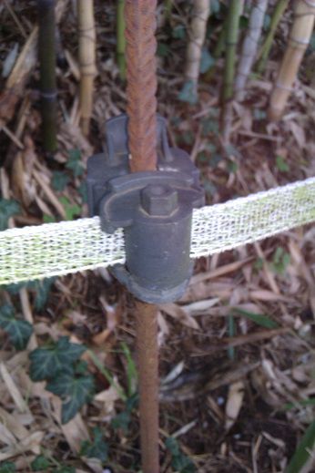 | Dire merci | Sur mes poteaux bois du paddock, c'est aussi des iso comme celui mis en photo, et j'ai mon ruban de la Sanglière dedans, pas contre, vu que le paddock est totalement à l'abri du vent, ça ne "travaille" pas du tout, je ne saurais dire si ça vieillit bien... |