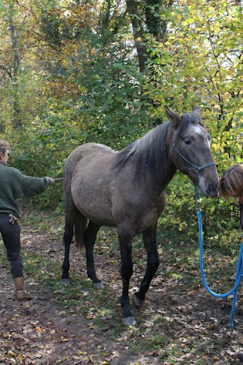 | Dire merci | Bah, cet aprem, ça recule de 6 pas ! Et en plus il tourne en longe, pas-trot à la voix. Il ne fait même plus face. On tient le bon bout !On a joué au foot avec un ballon en mousse aussi. Très rigolo : il s'est bien marré. Mais toujours en quête de contact : il essayait de me mordre les fesses. J'ai rué, très élégamment vous vous en doutez . J'ai vraiment senti aujourd'hui un vrai changement d'attitude.Question bête : comment joindre une photo du héros ? |