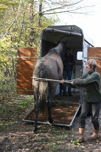| Dire merci | moi je ne suis pas du tout fane de l'idée de lui apprendre à moitié ! un cheval qui embarque du premier coup sans essayer de redescendre au 1/4 de l'embarquement c'est génial ! un cheval qui commence à monter et au moment ou il a les antérieurs dedans se dit qu'il recule...c'est vraiment emerdant. si il sait bien monté, en une seule fois, garde ça surout ne lui apprend pas à faire à moitié, au trois quart, et monter... il faut qu'il maîtrise parfaitement le reculer avec code sonore, avant de le remttre dans un van (surtout si la dernière descente à été un peu à l'arrache). C'est logique, quand il saura que quand tu dis "rrrrrrrrrr" (exemple) il faut qu'il recule (dans la carrière) dans le van, quand tu fera "rrrrrrr" il reculera, peut être avec appréhention, mais il le fera (au début ouvre lui le bas flan pour qu'ila i une meilleure vision) |