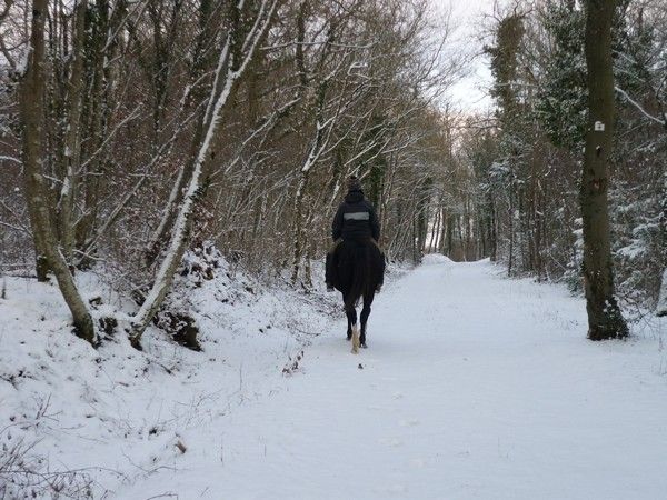Déconnecté | Moi qui pensais ne jamais faire de balade dans la neige, de peur que le cheval glisse ! Je redoutais cet hiver, en pensant que jamais je ne pourrais partir en balade... Et je vois vos photos, vous partez en balade malgré la neige !!! Mettez-vous des crampons ? Ou sont-ils pieds nus ? Vous autorisez-vous à trotter, voire même galoper (enfin, ça me paraîtrait peu probable, au galop, ça doit être dangereux !). Incroyable... |