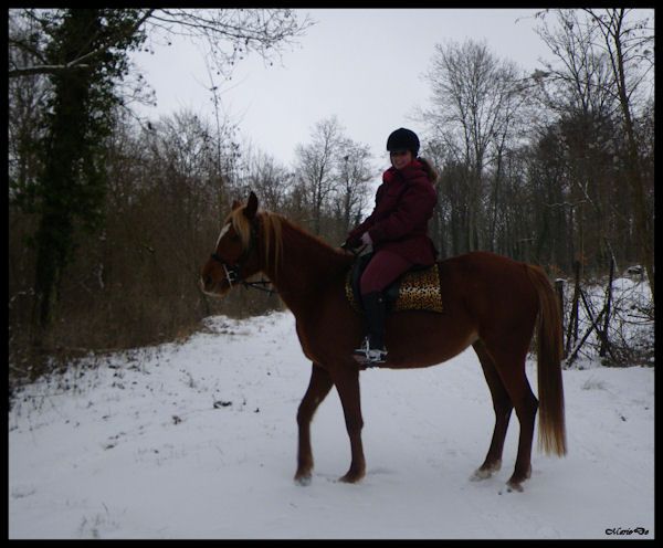 Première balade dans la neige! Ma Morue a été géniale, comme d'hab, tranquille, allante, on a même trotté! (j'étais pas chaude au début...) Super équilibrée même si ça glissait. Vraiment super!