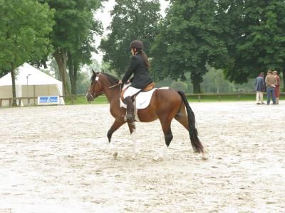 | Dire merci | Alors après avoir passé 2 jours a astiquer Set pour qu'il soit vraiment tout propre... j'arrive le samedi avant 7H a la ferme je lui fais sa natte de queue et hop dans le van avec copain Gave on arrive au concours, tout de suite la toise et le doudou mesure 1m45! puis j'apprend que la premiere epreuve sera le saut en liberté j'était toute triste (il va se salir )Set s"en est super bien sorti il a sauté comme un pro! tous les "spectateurs" été impréssionnés "Je savais pas que ca sautait les pottoks..." ensuite je me dis bon ca va etre la présentation cette fois et ben non: la monte le petit été tout juste échauffé par le saut je me suis dis "Oupps!" Mais bon c'est partie trot galop a droite PARFAIT malgré une première rébellion! puis trot a gauche super bien galop il part a juste! Là j'était toute contente! mais le premier tournant fut difficile alors pour le forcer a tourner je met un petit coup de cravache sur l'épaule puis un second pour qu'il avance car il avait franchement ralenti dans la ligne droite mais c'était un coup de trop et la il a dit "DEGAGE" avec ses fameuses ondulations de corps, du coup j'ai fais un soleil! puis je remonte, regalop bien et voila enfin présentation en main la ca a ete un peu plus compliqué car avec tous les copains qui henissent il etait pas trop concentré le loulou mais bon et pour finir la remise des prix sans surprise le pottock finit dernier après les PSF et les connemara mais c'est pas grave c'est le plus beau du monde de toute facon photos a l'appui |