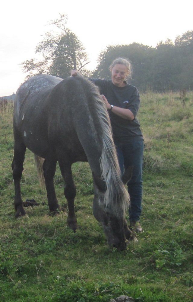 | Dire merci | Juste pour rendre à ce forum un peu de fantaisie sans prise de tête, je propose de poster des photos insolites, amusantes, attendrissantes, ... illustrant d'une manière ou d'une autre notre conception de la relation avec un cheval. (C'est Kariane qui m'a soufflé l'idée avec son : Quand tu auras trouvé son point de grattage préféré, elle te le rendra bien ) sur le post sur l'approche du poulain. La dernière arrivée, il y a 3 ou 4 jours, lorsque je cherche et trouve ce point de grattage (bon, chez elle, il est large). Précision : jument de 10 ans, pas débourrée, vécu au pré avec des poneys style shet, ne connaissait pas le pansage et selon son ancien proprio très difficile à attraper au pré. D'où l'importance pour moi de nouer une relation agréable pour elle avant d'entamer son débourrage. Effet Loreal dû au fait qu'elle secoue la tête pour gagner encore en sensations ![]() Message édité le 08/05/12 à 23:05 |