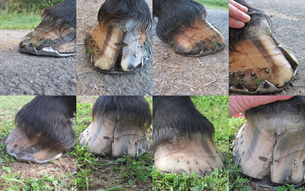 | Dire merci | désolée, j'ai pas tout lu, mais dès que j'ai le temps, je le fait. Euh, sur le parage (pas tout compris sur avant / après où et quand) sur la photo de base ferrée, pourquoi dans ce cas de maréchalerie classique, il y a pas eu une agrafe ? me paraitrait plus logique avec un parage adapté mais refermer que si infection guérie... Un traitement pour l'infection ? As tu photo du pied face solaire sans le fer pour voir l'état de la ligne blanche and co ? PHW aide, mais pas résistant sur sol abrasif (genre la route), avec traitement sur la seime au niveau de l'infection. |