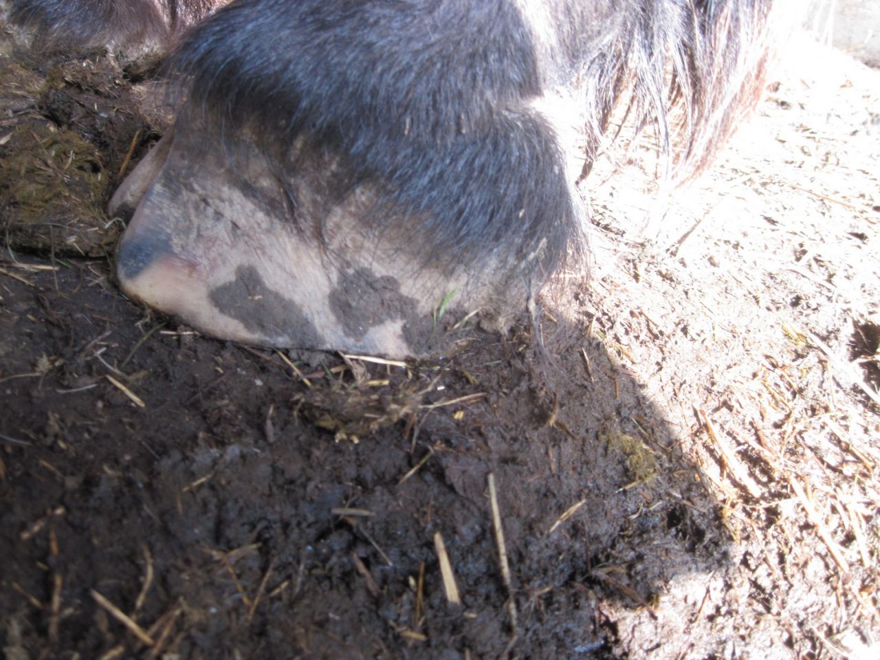 | Dire merci | La photo date d'il y a un an, je n'ai pas de meilleur profil, mais le principe de ce genre de parage était que le cheval repose sur la sole et non la muraille, de façon à supprimer toute pression sur ladite muraille, pour qu'elle ne travaille pas du tout. On avait relevé en pince pour qu'à la bascule du pied, la pince ne pose pas au sol non plus. La seime avait été grattée en profondeur de façon à éliminer la fourmilière sous-jascente, pour avoir un sabot sain. Et ça avait superbement marché!!! La muraille avait repoussé d'au moins 2.5 cm sans blessure! c'est bien comme ça que je le comprends ![]() un PHW, c'est un perfect hoof wear c'est une sorte de bandage en résine, le genre de truc qu'on utilise pour platrer une fracture ça maintient le pied, l'empêche de trop s'écarter, mais permet malgré tout un léger travail mécanique, afin que le pied reste stimulé ![]() |