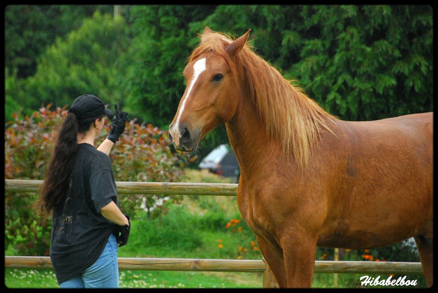 | Dire merci | C'est vrai qu'il est lui aussi naturellement du genre collant, que ce soit avec les gens ou avec les chevaux, je n'avais pas pensé à faire ce parallèle. |