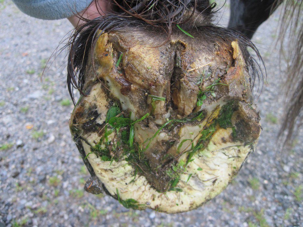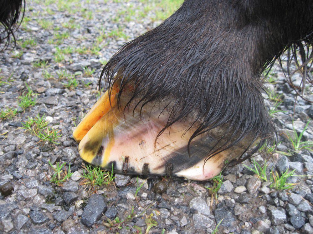 | Dire merci | Pour le talon trop long, je ne sais pas évaluer, mais peut-être est l'angle de la photo, car Luna n'avait pas posé tout à fait son pied au sol (pleine de bonne volonté, elle était tout le temps en train de vouloir me le donner). Voici d'autres photos, de profil. Le talon plus court, à mon sens , on ne saurait pas. Pour la pince, la muraille n'est pas au sol. Je ne sais pas en dire plus, si ce n'est que l'année passée, j'avais de 2 à 3 cm de repousse saine. Mais j'ai dû la mettre en pension durant l'hiver, car je n'avais pas de prairie, et un mauvais maréchal (plus de la négligence de ma part, méa culpa), ça a tout fait foirer. Puis, Bénédicte avait disparu de la circulation, et ça n'a pas arrangé les choses. ![]() ![]() ![]() Pompotte, je suis tout à fait d'accord avec toi, ça a l'air assez dégueux, mais ça l'était encore plus avant le parage, je remets les photos, au cas où tu ne les aurait pas vues sur un autre poste : Parage et ferrage le 1 juin 2012, par un maréchal du coin: ![]() ![]() A nouveau ferrage le 29 août 2012, par le même maréchal, j'étais pas contente du tout, car il n'y avait aucune amélioration, et ça n'a même pas été nettoyé correctement: (c'est pour ça que j'ai fait revenir Bénédicte à peine un mois plus tard, je l'ai heureusement retrouvée) ![]() Voici l'un des sites de Bénédicte, mais elle a eu des problèmes, et pour le moment, le site n'est plus actif : Lien L'autre site, plus ancien : Lien J'ajoute les diplômes de Bénédicte, pour qui douterait de ses qualifications et de son savoir faire : -diplômée de l'école d'équitation de Gesves; - diplômée de l'école de Maréchalerie d 'Anderlecht (Belgique) - Graduated at the school of Barehoof Strategy, Switzerland Message édité le 27/09/12 à 12:01 |