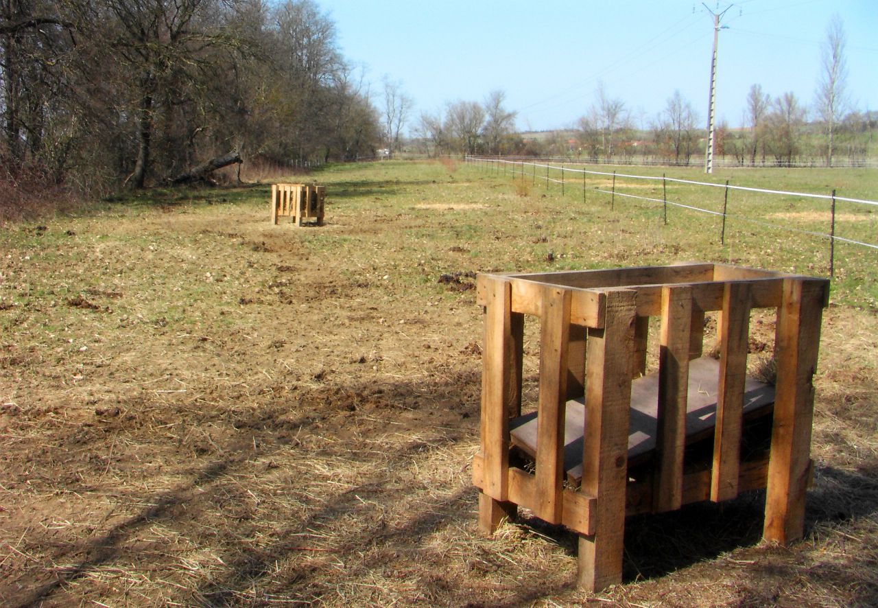 Déconnecté | Si tu mets des filets à foin, ils vont stationner longtemps au même endroit, il faut alors absolument stabiliser le sol sous peine de gros bourbier. En fait le filet à foin n'est pas trop dans l'esprit original du Paddock Paradise qui vise à les faire marcher le plus possible, en allant de tas en tas et en grappillant les brins d'herbe sur les bas côtés. Mais en hiver par exemple cela reste quand même plus pratique de remplir un filet que de disperser des petits tas de foin sur le parcours. Mais cela impose un sol stabilisé (dalles) et bien entendu un nettoyage quotidien de la dalle, donc devoir évacuer du crottin etc... |