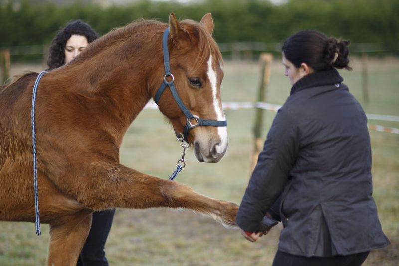 | Dire merci | flexion des antérieurs et test de la planche : peut laisser présager une maladie naviculaire... pas bon signe du tout...![]() |