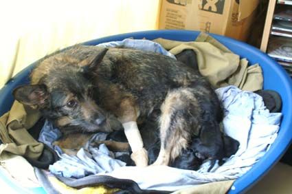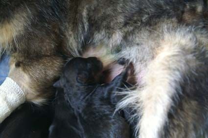 | Dire merci | coucou je passe vite fait car extenuée. troïka et toute sa tite famille va tres bien (çà pialle déjà) tout le monde tete et se fait une place. Troïka a pas mal souffert cette nuit. debut du travaille à 1h30 (premiere poche) puis plus rien jusqu'a 4h30 la deuxieme; mais titoune epuisée n'arrivais plus a pousser. On appel le veto a 5h qui nous donne rdv a 6h. diagnostic, soit on tente par voie nautrelle et on peut perdre tout le monde. soit on fait une cesarienne. (même si j'ai u bcp de mal a signer le cheque (presque 500€ en tout :cry je ne voulais pas perdre ma toutoune. Ils sont tous trop mimi 4 mâles et deux femelles (sans doute déjà placées les nenettes) je vous mettrait des photos plutard ou sinon pilou, car je tombe sur mon clavier. gros bisous |