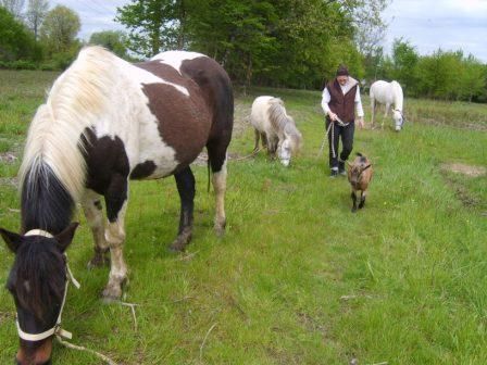 | Dire merci | Bon voilà le travail c'est super bien passé, vu ce qu'on a fait. C'est à dire ballade On a décidé de sortir les 3 jujus+ prudence. Biensûr on a fait faire du respect à Pimky, car c'est une brut et elle est trés speed. Gina je l'ai bossé sur la voie. Maintenant elle trotte quand je lui demande et ça à l'air de lui plaire à chaque fois Quand à Viken, le mot d'ordre était ne pas botter Prudence. Ben oui elle la prend pour un chien et elle déteste les chiens En tout cas ça a fait du bien à tout le monde. Gina s'est laissé brosser alors qu'elle était en liberté |