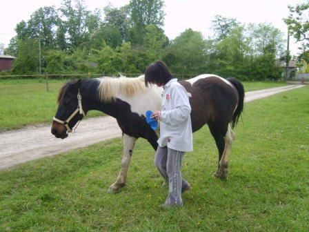 | Dire merci | Cool !!! Merci Marion on cherche des trucs à faire avec elle car ona l'impression qu'elle est blasée et s'est déjà tout En faite cette séance d'ostéo la complèteemnt changer car même lui passer l'enrènement ne la dérange pas et pourtant on tripote entre les antérieurs. Bon biensur le serrage c'est toujours un peu de mouvement mais quand on le sait on s'y habitue et puis c'est plus aussi folclorique.Là on va reprendre la bache, la faire passer dessus plusieurs fois sans qu'elle hésite. Apréson la fera repasser mais cette fois la bache encadrée, on continue le jet d'eau car c'est un mangeur de chevaux (il est sur portique et en plus il fiat du bruit comme si il crachait )Par contre je sais pas si ça se voit bien sur la vidéo mais elle passe exactement où je passe surtout quand je me remets au milieu des barres. Une vraie pro la louloutte |