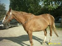 | Dire merci | Alors la jument s'appelle Kidjy, c'est une OI qui va prendre 10 ans cette année. Elle mesure 1.60 m, elle est alezan crin lavé. D'après sa propriétaire, c'est une jument vive, mais pas vicieuse, qui adore sauter (saute 1.2 m paraît il), et aller se balader. Jusqu'à maintenant elle était au pair dans un club, sa propriétaire vient juste de l'en retirer, elle est en pré maintenant. Toujours d'après sa proprio, elle a pour défaut de lever la tête, mais en même temps au pair avec des débutants sur le dos, j'veux bien croire qu'elle sache pas trop se placer... Et en gros, elle correspond à ce que je recherche : - pour un premier cheval, même si je monte depuis 16 ans, je préfère pas en prendre un tout jeune, parce que j'avoue que les nombreux posts dans les forums de personnes qui ont du mal avec leurs jeunes m'ont un peu démoralisé... - qu'elle soit oi c'est le dernier de mes soucis, je ne veux pas faire de concours - j'aime beaucoup le dressage, donc placer la jument et lui apprendre à se poser sur le mors ça devrait bien me plaire, et ensuite ben voir en fonction de ses capacités et les développer de mon mieux... - la jument est gentille et rustique : ça tombe bien elle vivra au pré si je l'achète, et fera beaucoup de balades (ainsi que de travail à pied, je voudrai essayer l'étho...) - elle saute bien apparemment, je pourrai me faire plaisir de temps en temps... et elle est vive, ça tombe bien, les chevaux mous m'ennuient lol Voici une image de la 'bête' : ![]() Dites moi ce que vous en pensez, je la trouve assez porteuse, maias son encolure ne me paraît pas très musclée par rapport au reste du corps, mais à mon avis ça peut se rattraper en la bossant sur son placer... |
