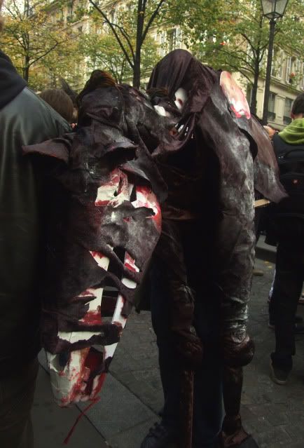 | Dire merci | Alors voilà pour les extraits de la zombie walk à Paris Eh oui : on trouve des chevaux à Paris, d'abord ![]() (bon, d'accord, les pluies acides de la capitale n'arrangent pas la brillance de leur poil d'hiver )Et puis ensuite, on s'est fait suivre pendant presque 2h par des gens étranges ![]() ![]() ![]() |