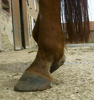 | Dire merci | certainement à cause des barres qui tiennent trop fortement le sabot. Faut les abaisser au niveau de la sole. En plus si tu abaisses les talons et pas les barres elle doit marcher dessus et c'est douloureux. ![]() |