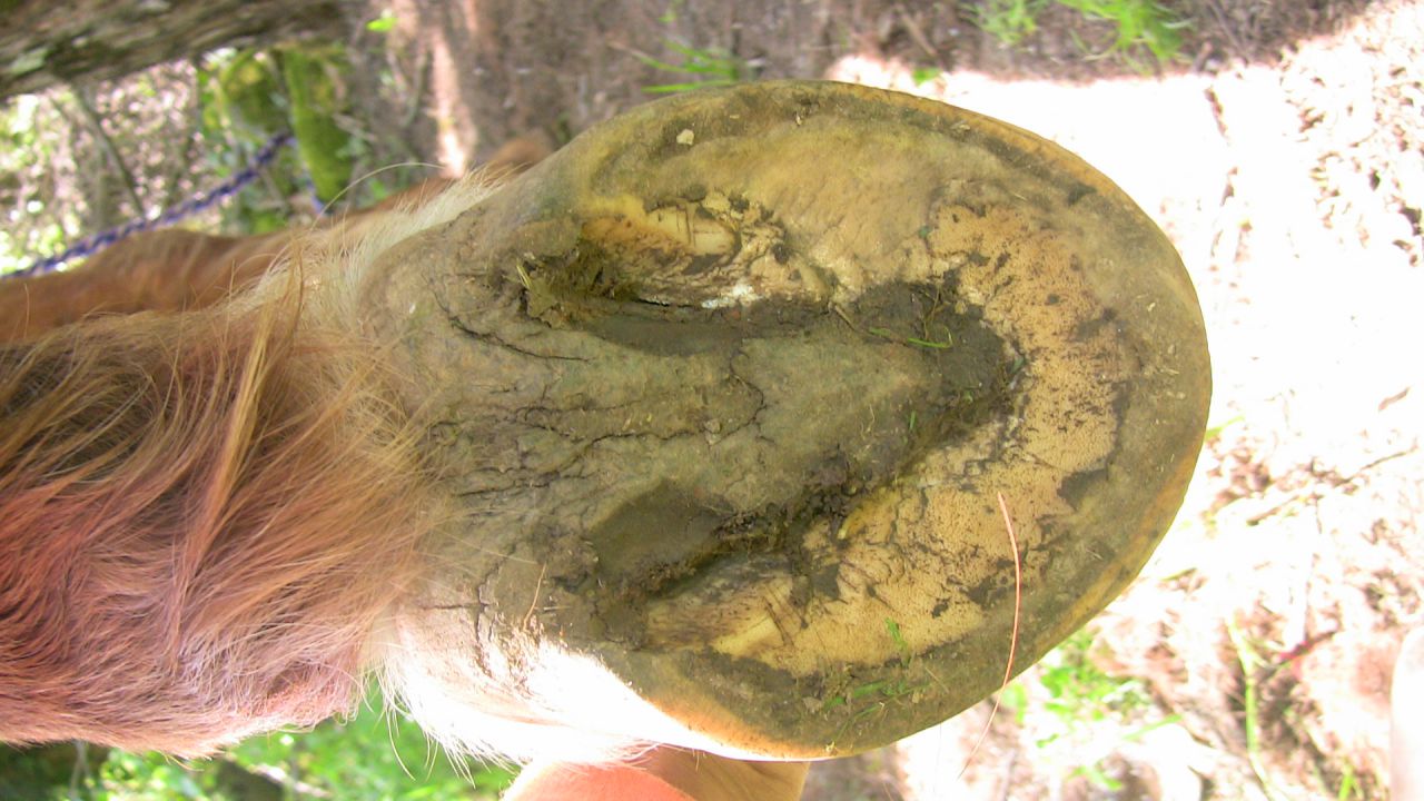 | Dire merci | beau parage de la paroi, bien régulier je ne sais pas si tu manies la reinette ou pas, mais dans ce cas j'aurais plus paré la fourchette, la pointe de celle-ci doit être à hauteur de la sole et dans sa partie postérieure légérement en-dessous du niveau des talons (au final la surface de la fourchette est plane et remonte en pente régulière du niveau de la sole vers les talons) |