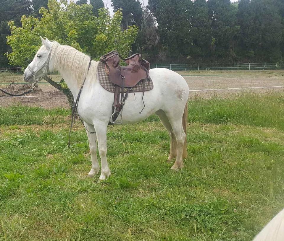 | Dire merci | Je suis une grande fan de camargue !!! J'ai hésité longtemps car je suis grande 1m74. mais finalement j'ai craqué quand mëme pour cette race qui m a toujours fait rever . Je l'ai debourré moi-meme, partie en exterieur seule tres rapidement . Un reve : elle est dynamique mais calme , courageuse, elle passe partout mais partout !!! meme la ou j'aurais pas pensé qu'elle passerait mais je la laisse faire : ça a le pieds hyper sur !! Hyper gentille . Sont seul default c'est la gourmandise !!! |