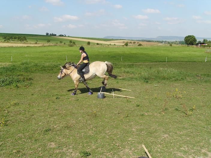 | Dire merci | laprince, OOOOOOOOOOOOoooooooohhhhhh Miss est trés loin d'etre agréable a monté mdr une vrai pile electrique, en balade accompagné ça va, mais sinon meme en manege on ne peut pas se detendre 2minutes sinon elle fait la con,enfin bref mais bon elle s'est bien calmé c'est deja ça !!j'espere que tu aura des photos de Indra au saut !! a la limite si tu as un peu de materiel pour evité les derobade, tu met 1 barre de cahque coté de ton obstacle, qui reposent sur tes "chandeliers", comme ça l'obstacle va etre encadré et elle sera moins tenté je sais pas si c'est clair |