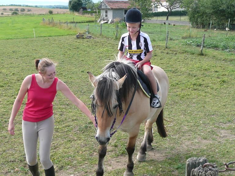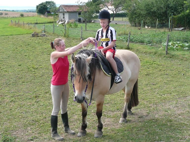 | Dire merci | oui c'est vrai que les fjords faut les motiver mdr en plus on est en été et il fait drolement chaud donc Princesse veut toujours rester sous l'abri ^^ mais bon je l'a monte les soirs a la fraicheur ^^ laprince, oui c'est cool mais la carriere est un peu en pente pas beaucoup mais un peu chez moi pour trouver un terrain plat ben faut avoir du pot XD en parlant de maréchal le moens est parti en vacances plus précisément dans les Pyrénées ^^ alors on l'a appeler avant qu'il parte car il nous l'avait dis et puis moi je l'a faire plus Princesse je laa laisse pieds nus leslie, Bon voyage amuse toi bien ^^ |