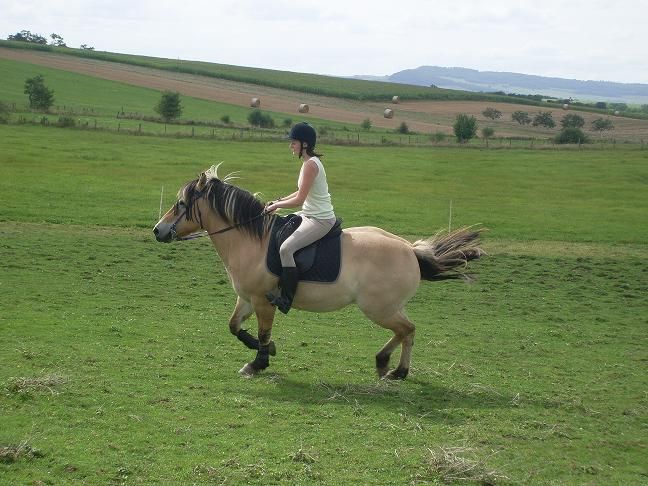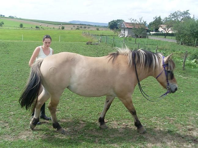 | Dire merci | en une voila une avec de belles chaussures neuves!jolies photos toi aussi laprince88, ton fjord est ferré avec 2 pinçons aux antérieurs? Fuego aujourdhui a eu la visite de "ami du chevaux" du forum Je l ai monté, il a été royal aux 3 allures à la voix,transitions, pousser les hanches, reculer, jambette montée.;encore un zéro faute.Je suis fière de lui, c'est vraiment un amour de fjord, il fait tout de bon coeur .la semaine proch, on a une belle balade en prévision, avec départ à 9h30.Patélise: non il ne s est absolument pas fait mal dans le grand fossé en reculant, il s est juste fait un peu peur(et tant mieux il n a jamais recommencé).Ils sont sur 4 pieds, contrairement à nos 2 pieds à nous;donc ils tiennent mieux que nous sur ce type de terrain. |