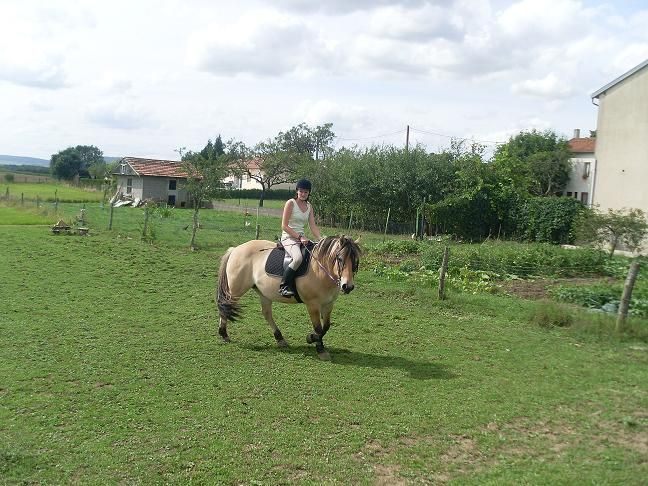 | Dire merci | ptite_marmotte, je suis contente que ton travail se passe bien avec Fuego!! Oulla alors grosse balade prévue? Oui Indra a deux pinçons également. leslie67, hors-mi le maintient, je ne sais pas ce que ça change, je sais qu'Indra se porte mieux comme ça c'est tout, et que beaucoup de Fjords sont à deux pinçons. Peut être ont-ils les pieds qui s'y prettent. cici, ah oui pas top j'imagine..ça craint le temps moi je ne l'ai pas monté depuis une semaine et demi, j'en ai trop marre, vive la Lorraine ![]() Aujourd'hui (et hier), j'avais des copines à la maison. Je les ai fait monter cette après-midi, elles ont bien aimé ![]() On a fait un tour dans mon village, l'une allez, l'autre retour. Je l'ai ensuite monter pour faire quelques sauts histoire de leur montrer, elles voulaient voir, et surprise, elle m'a fait de bons gros sauts aujourd'hui, j'étais contente. Elle a du potentiel quand même, ça me rassure! Voici quelques photos: Le parc bien vert de la grosse, avec la pluie qu'on a depuis une semaine... ![]() Je vais chercher mademoiselle, je lui mets le filet et hop c'est parti pour l'autre bout du parc pour un pansage! ![]() ![]() ![]() |