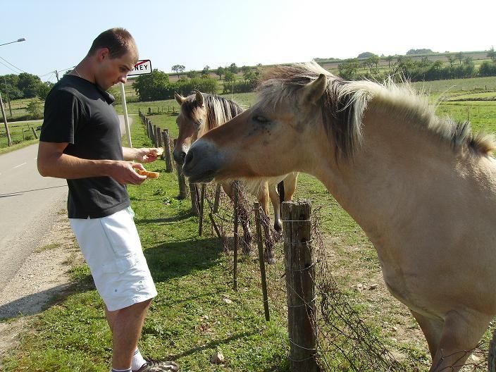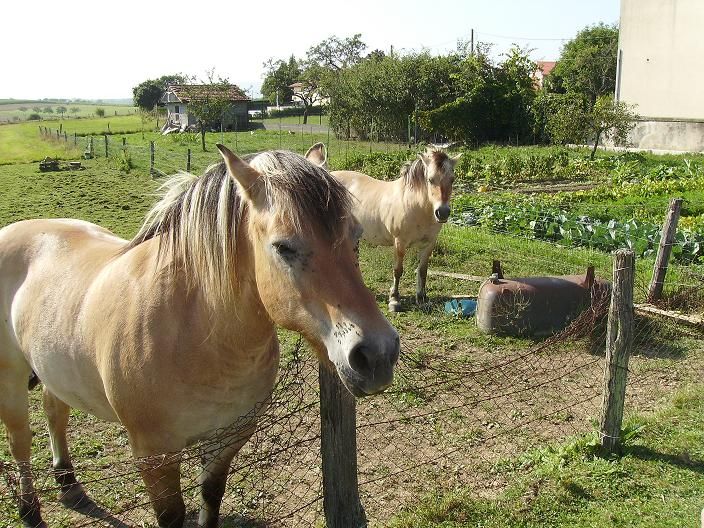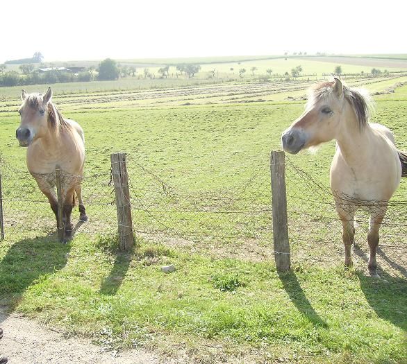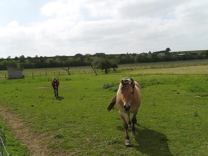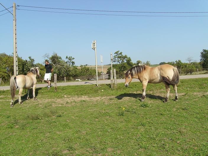 | Dire merci | L'arrivée de Hoxha c'est bien passée. Nous avons été sur la colline la chercher avec l'éleveur, mon copain et ma mère. Nous avons retrouvé frootloops là haut. Hoxha a été toute sage pendant le trajet, les deux loutes ont juste eu un peu de mal au pré. L'aprem nous avons fait une petite balade pour habituer Hoxha à Indra la terreur... Là ça va elles sont sages. Elles mangent, fidèles aux Fjords.. Indra et moi - Hoxha et Justine ![]() ![]() Indra et moi ![]() Hoxha et Indra ![]() ![]() ![]() ![]() ![]() Message édité le 30/08/08 à 18:20 |