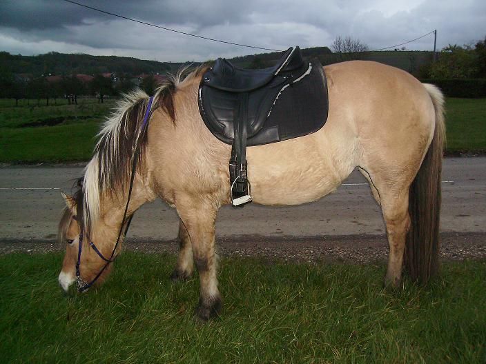 | Dire merci | cool tu as pu essayer la selle, ma xaxa a l'air d'avoir bien transpiré pendant l'absence d'indra et elle est bien cracra Je trouve que la selle est plutôt bien placée car après elle risque d'être trop avancée, j'avancerais peut être un petit peu le tapis à l'avant pour qu'il dépasse plus devant si tu vois ce que je veux dire. Mais avec ce tapis j'ai pas l'habitude donc pas facile de voir. Si samedi tu peux prendre des photos, ça sera bien, car ça m'intéressait de savoir comment on doit la placer exactement, ce n'est pas toujours évident je trouve. |
