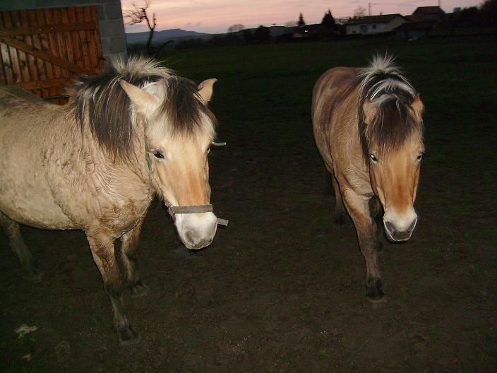 | Dire merci | super l'essai de la cheyenne!!!! alors t'es réellement convaincue??? je voulais me payer une cherokee à noel mais je préfère investir dans une selle cosaque, des classiques j'en ai déjà 2 (et je n'ai tjrs vendu ni ma western, ni ma mixte )savez ce que Cici a fait ce soir là à la conduite??? J'ai grillé un stooooooooooooooooooooop pas fait exprès le moniteur ne l'a pas vu non plus (enfin si mais quand je l'avais passé depuis 10m ). du coup il arrête pas de me charier avec ça mais il m'a qd même validé mon étape, parce que selon lui "malgré que t'ai grillé un stop, le reste, ça va!"la couv a miwa lui va impec, j'ai enfin pu mettre les 2 autres au lavage pov machine à laver, elle a souffert mais bon le pb des couv là, c'est que ça lui va tout pile longueur cul, mais devant c'est toujours trop ouvert elle est taillée comme un quarter horse mais elle a une taille poney, du coup c'est la misère à moins d'en faire une moi même (mais je suis pas assez douée ), elles seront soit trop ouvertes devant, soit trop courtes derrière même la vendeuse était choquée qd je lui ai dit qu'il me fallait un 135cm pour une fjord d'1m46 |