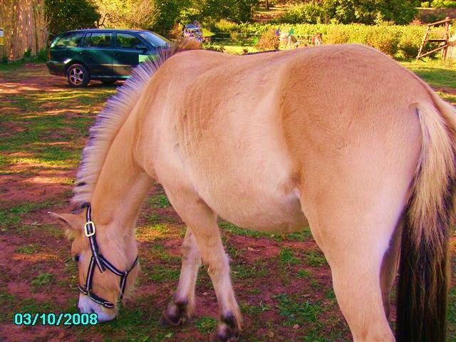 | Dire merci | C'est d'ailleurs bizarre qu'il soit mince..je n'ai jamais vu un Fjord mince! Lui oui, je pense aussi que le foin devrait être à volonté le temps de le remettre en état. |