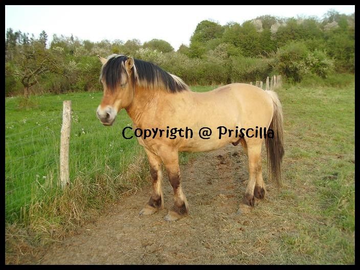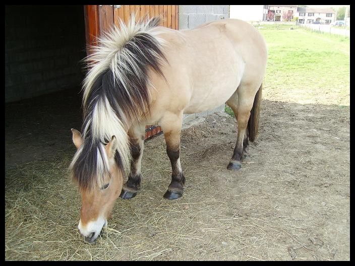 | Dire merci | C'est bien leslie67 si tu as trouvé une bonne famille pour Armelle! frootloops, de rien Oui Hoxha a probablement pris de sa mère car elle est beaucoup plus petite que Douke et moins foncée.Oui comme vous pouvez le voir, ça n'est pas un Fjord de sport, c'est un beau Fjord bien réparti comme je les aime Mais c'est vrai que c'est halucinant la ressemblance avec ma loute sur tous les points. Hate de voir si je vais également pouvoir rencontrer sa maman. Je suis allée voir l'élevage, mais les gens n'étaient pas là. Mais j'ai vu 6/7 Fjord dans un padock, donc peut être encore une chance qu'elle soit là. |