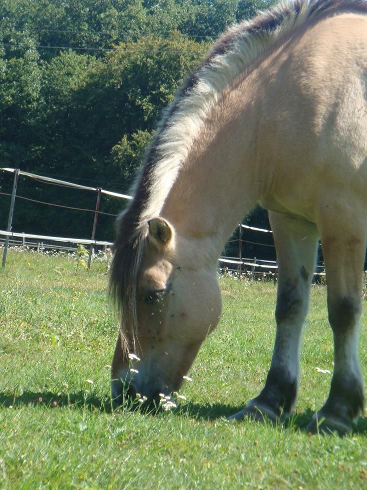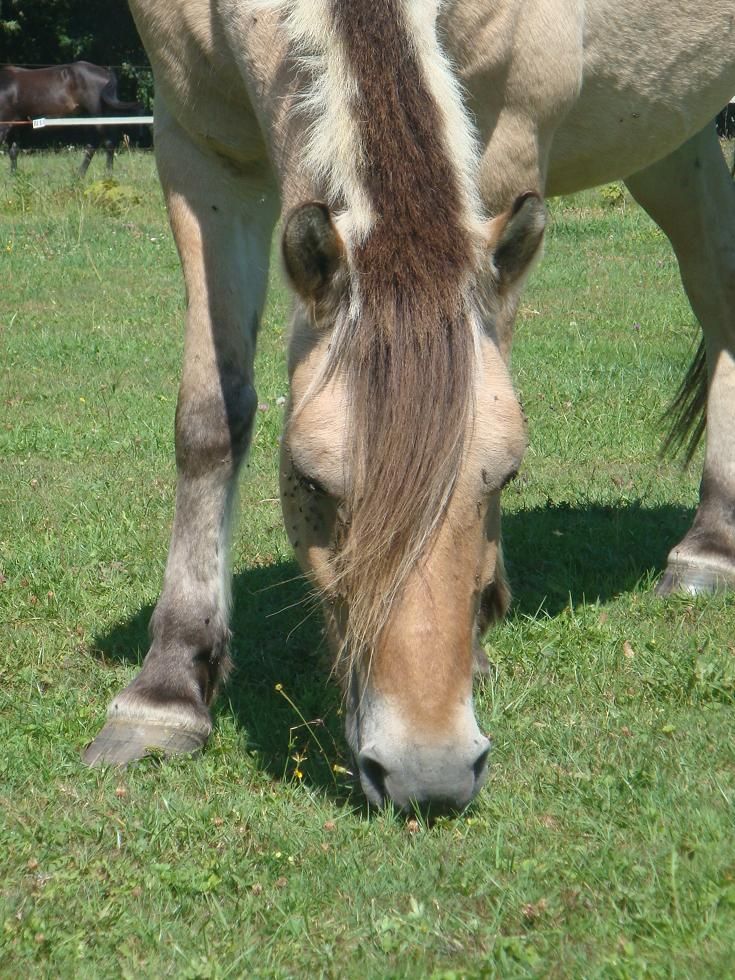 | Dire merci | Pauvre Kétie, j'espère que ça va s'arranger pour elle .. Julizz, barf, ça va venir, faut laisser le temps au temps! Et non, Darwing à la crinière .. J'sais pas comment on peut qualifier ça ! Je voulais lui refaire en brossen mais il était trop tard dans l'année, donc j'ai préféré lui laisser comme ça pour passer l'été, plus agréable pour se débarasser des bestioles, et je pense lui refaire la brosse dès cet automne (enfin si je peux, j'ai une tondeuse mais aucune prise de courant dans mon pré -_-' ) |