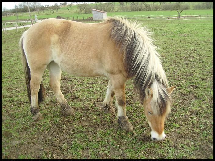 | Dire merci | darwing, excuse moi si j'ai pas suivi mais il a quel age ton fjord, car je trouve qu'il a la cuisse creuse comme le mien et c'est pas une histoire de poids puisque le mien a force de l'engraisser va finir obese (là je stop tout pour eviter la fourbure) est ce l'age ou un manque de muscle ou sa morphologie tout simplement |