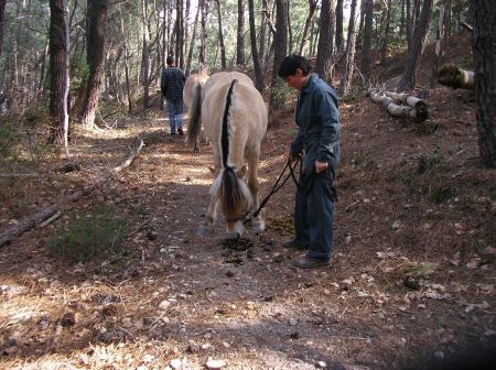 | Dire merci | Laprince : mon shet est en licol, et la longe de son licol est attaché à l'anneau de croupière de ma selle ! |