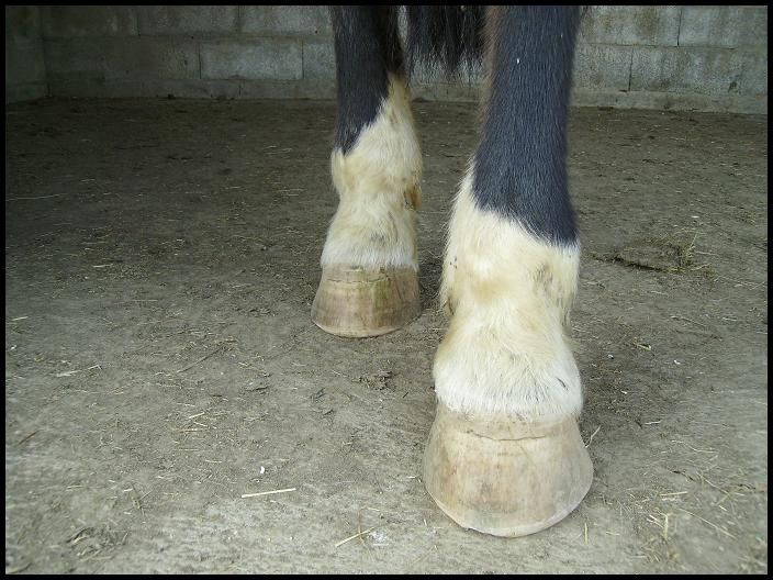 | Dire merci | Reee! Ca y est, le maréchal est passé pour s'occuper des pieds de mes p'tits chéris! Le bilan est positif pour tout le monde! Après 6 mois de pieds nus, la corne d'Indra s'est vraiment bien solidifiée. Néanmoins, là je suis presque arrivé à l'os mdr, il a fallu ferrer les antérieurs, elle avait les pieds trop usés. Pour Champion, un parage classique. Il marche bien, plus de boiterie, juste une légère gène à un postérieur. Sa corne pousse mais lentement. Son abcès sec déscend doucement dans le pied. Je ne pourrai certes pas le monter cette année, mais je peux le faire marcher un peu en longe. Quelques photos de mes Martiens! ![]() ![]() ![]() ![]() Et leurs petons: Indra ![]() Champion ![]() ![]() |