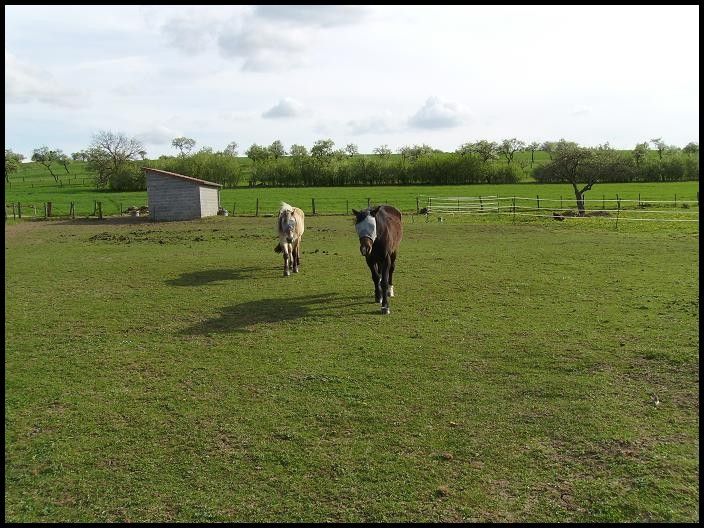 | Dire merci | J'ai eu des nouvelles de Picsous. Sa nouvelle proprio en est ravie. Il lui sert de cheval de tête pour emmener ses balades poneys, il ne fait pratiquement que du pas, et il se porte comme un charme. Je suis contente, il a trouvé la vie qui lui convenait et il a l'air d'être heureux. Il vit dans de grandes patures en troupeau, et ne fait que de petites balades tranquillou. Je crois que j'ai pris la meilleure décision pour lui. |