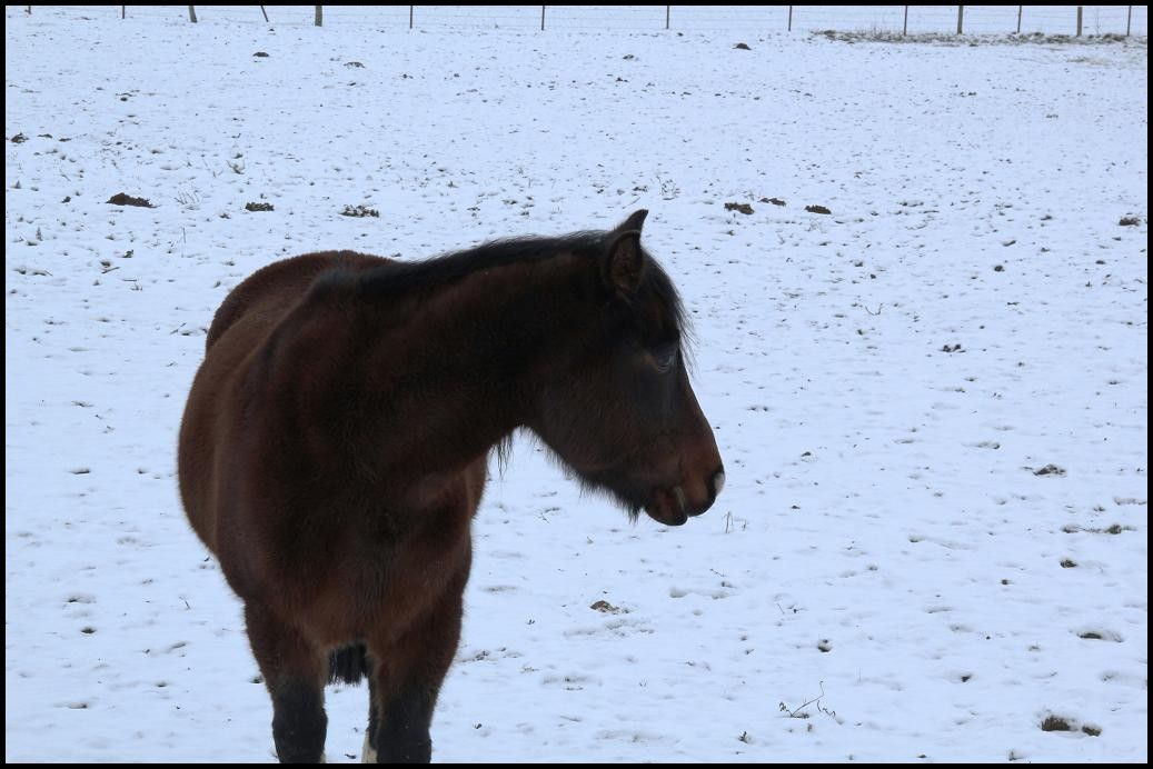| Dire merci | Laprince, je vois que chez toi aussi les poneys se régalent dans la neige ! chez moi aussi ;-), ils ont un abri et n'y vont jamais... une ptite photo de ma didine[url=http://i63.servimg.com/u/f63/11/43/80/89/imgp3112.jpg] [/url]et avec petit Sourire [url=http://i63.servimg.com/u/f63/11/43/80/89/imgp3113.jpg] [/url][url=http://i63.servimg.com/u/f63/11/43/80/89/imgp3114.jpg] [/url]cet aprème, je vais me faire une balade en longues renes avec didine, si ça glisse pas trop ! j'aime pas vraiment ce temps, on peut rien faire, j'ai mis 2h pour aller au boulot hier, bref, vivement le printemps lol |