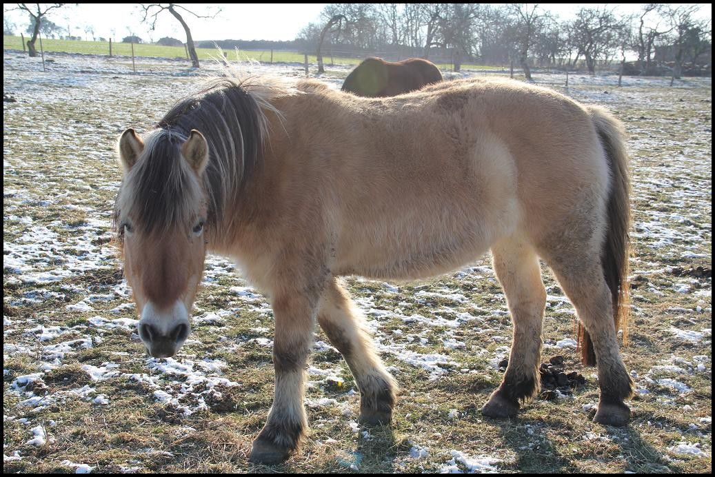 | Dire merci | Birka a eu 10 mois hier. Sur les photos elle en a 9. Elle est costaude depuis sa naissance, ce sera un modèle comme sa mère. Loin du fjord "sport". |